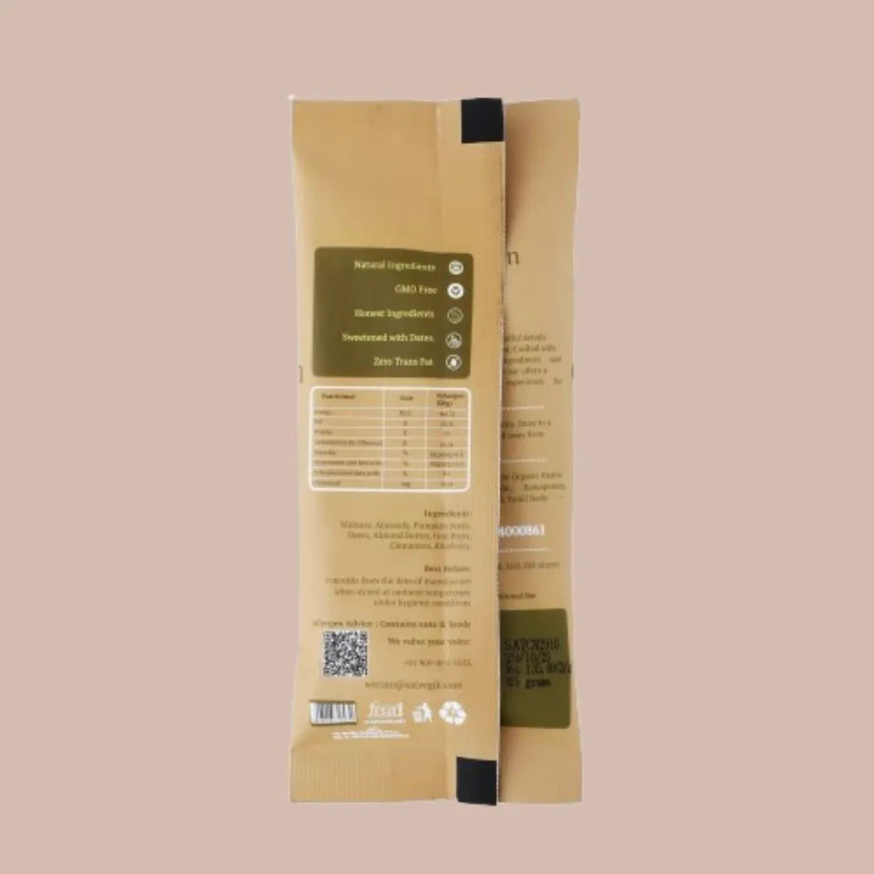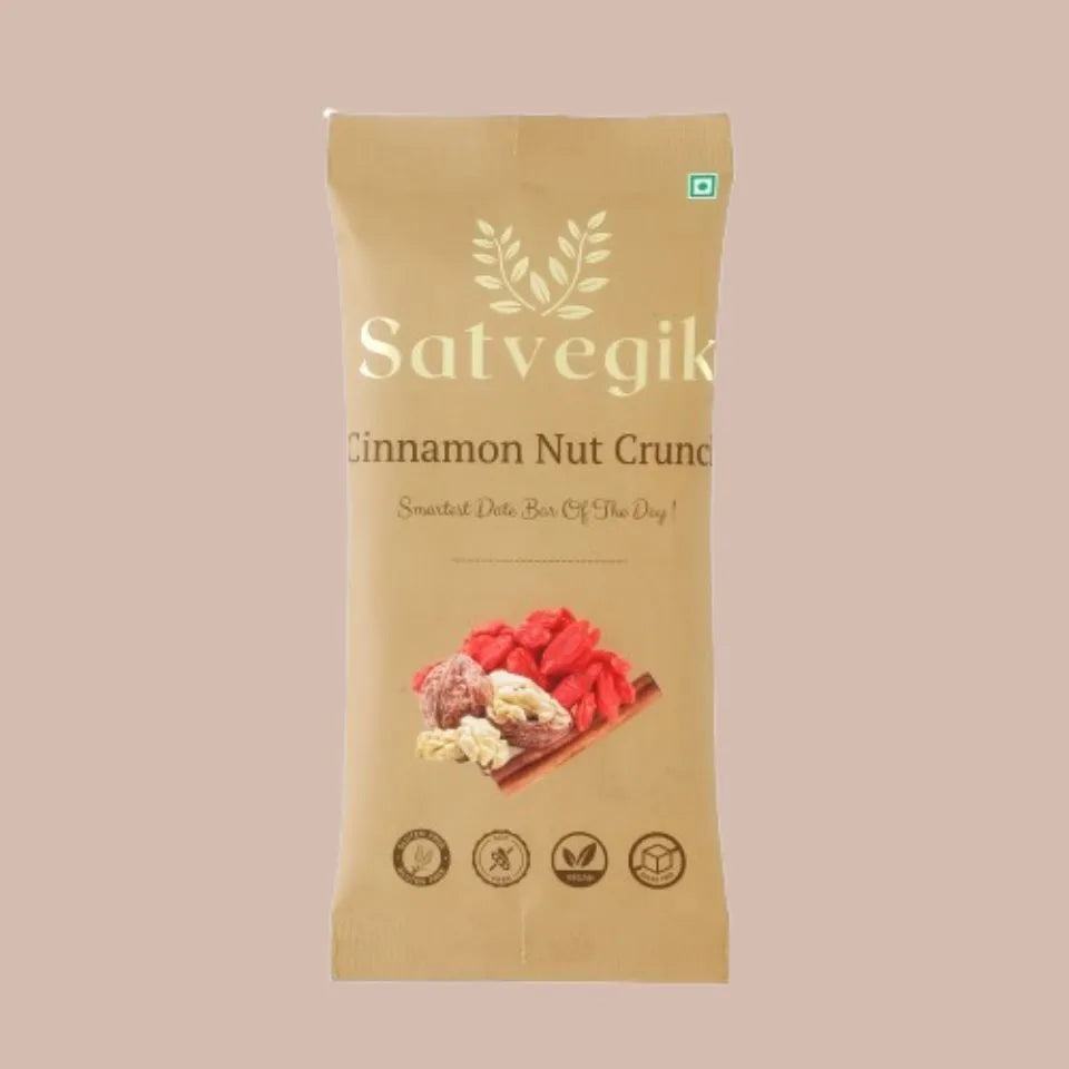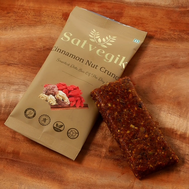 Satvegik bars are made primarily from naturally sweet dates, along with nuts, seeds, and wholesome ingredients with absolutely no added sugar, preservatives, or artificial flavoring.